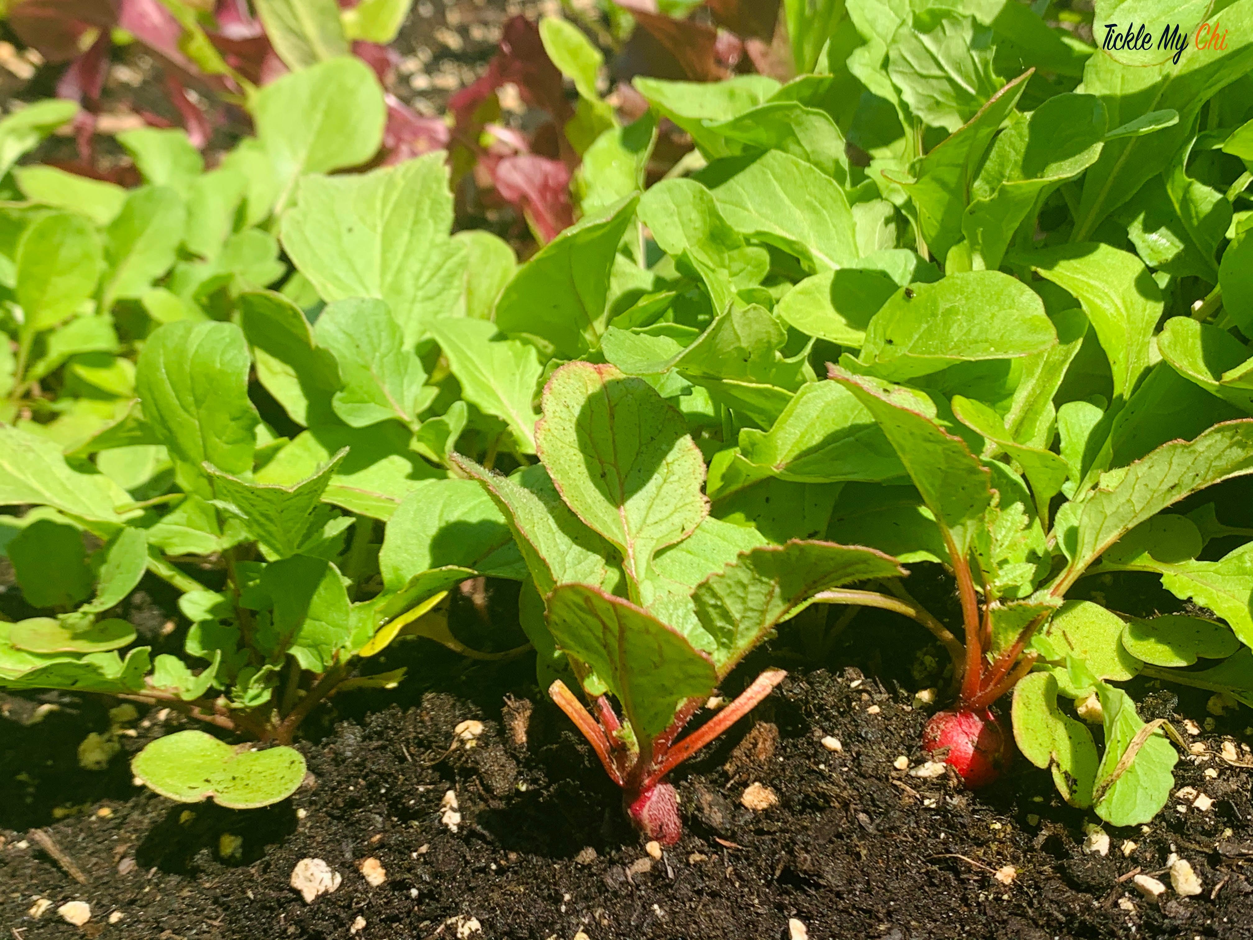 It was a beautiful day to be outdoors, water the plants and check on our little raised garden bed. The seeds were planted during the early Spring season and lovely to see that the radish were the first to peek up and show itself to the sunshine today.