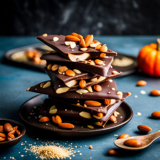 3. Dark Chocolate Bark with Almonds & Seeds: This easy-to-make recipe involves melting dark chocolate, spreading it over parchment paper, and topping it with almonds, pumpkin seeds, and chia seeds. Once it sets in the fridge, you can break it into pieces and enjoy it as a healthy snack.
