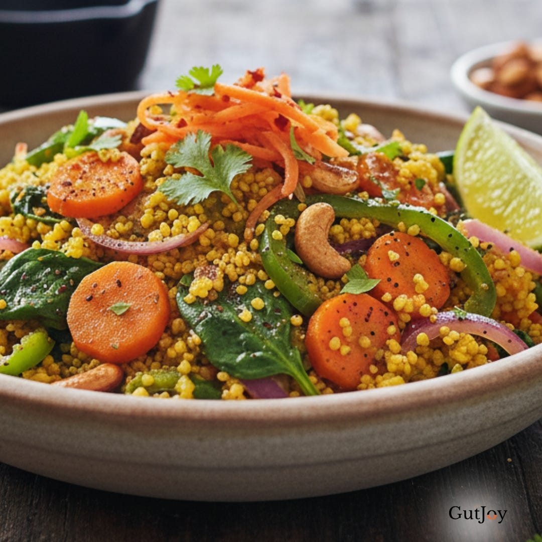 Masala Millet Stir-Fry with Gut-Boosting GreensA colorful fusion of Indian spices and Asian flairLeena MahtaniNov 05, 2025∙ PaidShareWhy It’s GutJoy-FriendlyMillet is naturally gluten-free and rich in prebiotic fiber, making it gentle on digestion. When paired with leafy greens like spinach and methi, it supports microbial diversi…This post is for paid subscribersSubscribeAlready a paid subscriber? Sign inPreviousNext