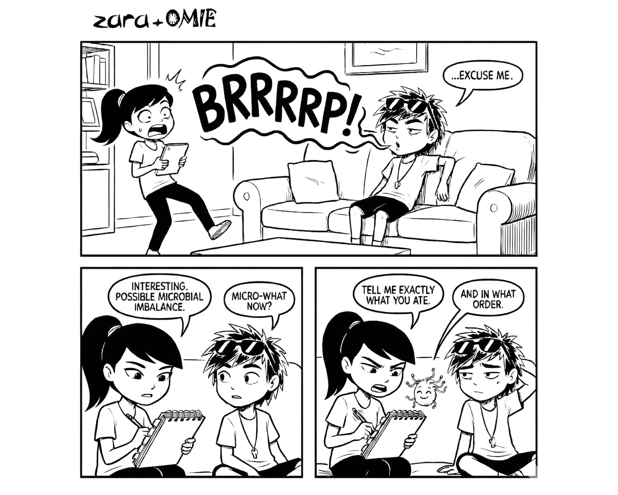 Zara! I said gut flora… not ‘leftover pizza’ flora!