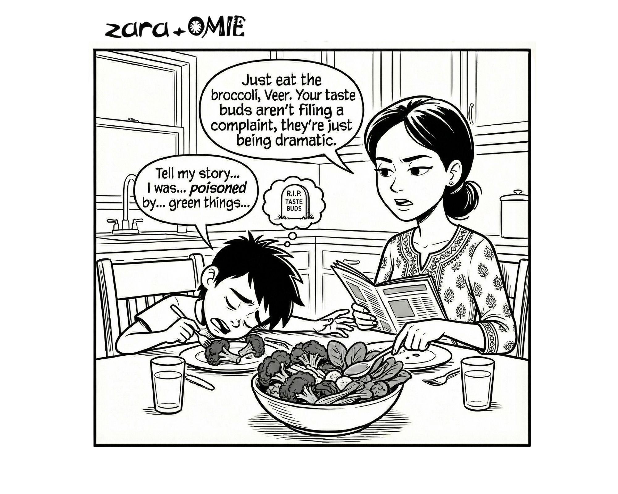 Veer is convinced his taste buds are under attack, while Ma just calmly reminds him that greens aren’t out to get him. They’re just… vegetables.