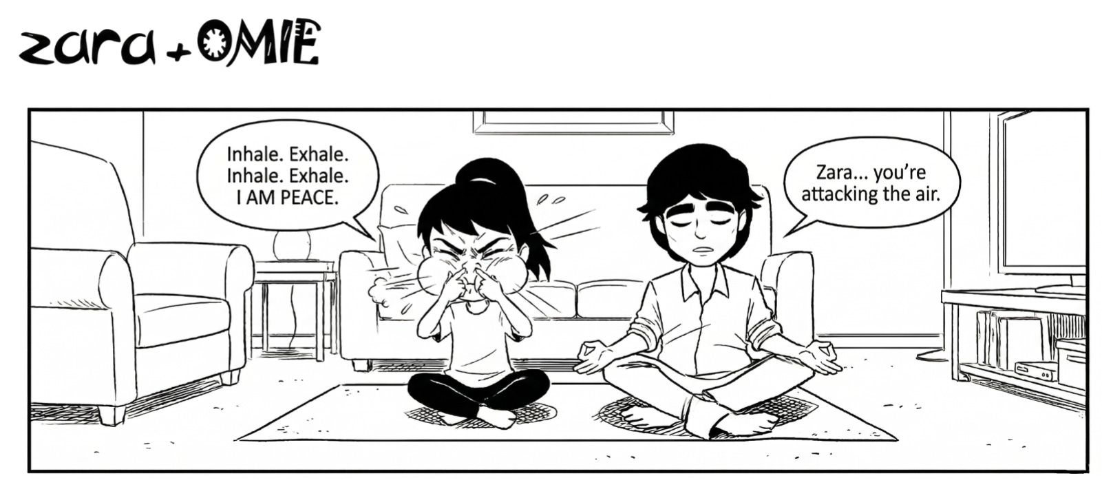 Papa insists he’s “meditating,” but Zara knows a suspicious snore when she hears one. And honestly, who hasn’t tried to sneak a peaceful nap disguised as spiritual self-care? In this tiny moment, meditation and power-napping become the same practice… according to Papa, at least. Sometimes inner peace comes with a little snoring, and that’s okay.